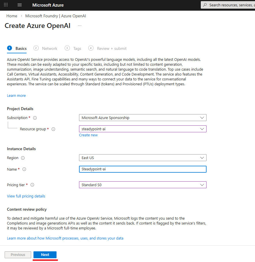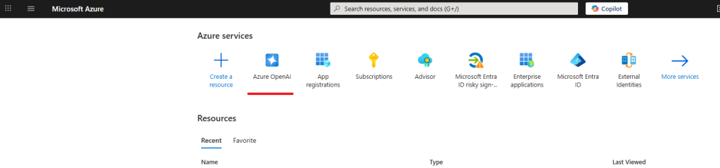 - Go to portal.azure.com and find Azure OpenAI