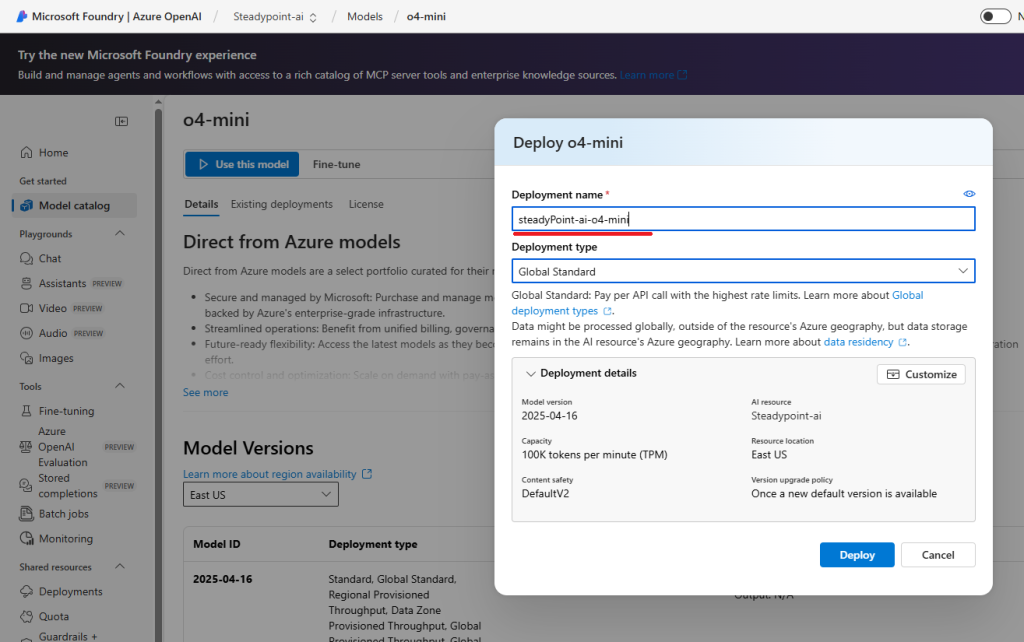 - Type the Deployment Name