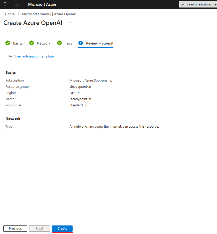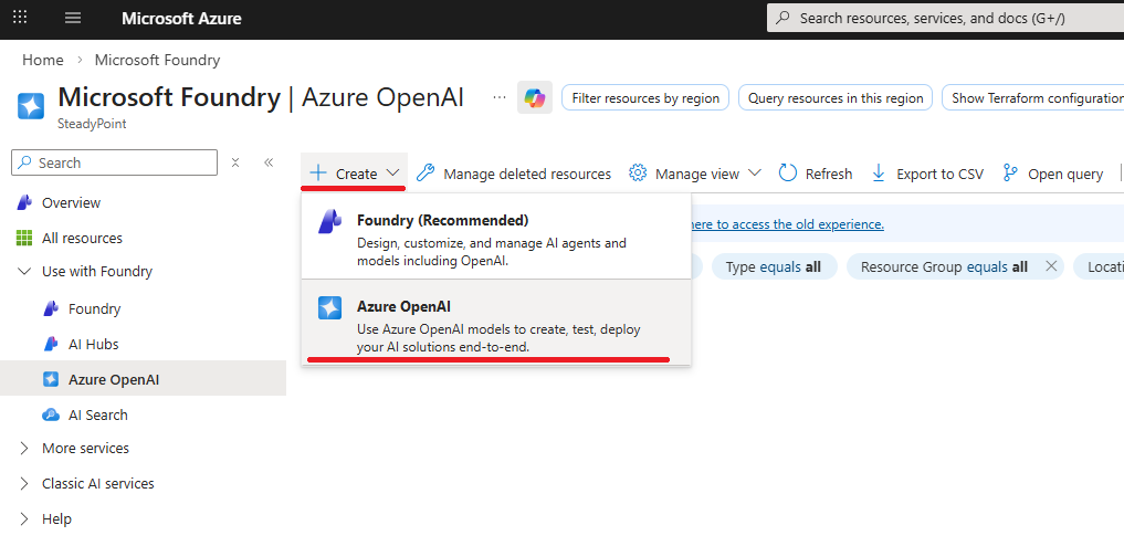 - Create Azure Open AI