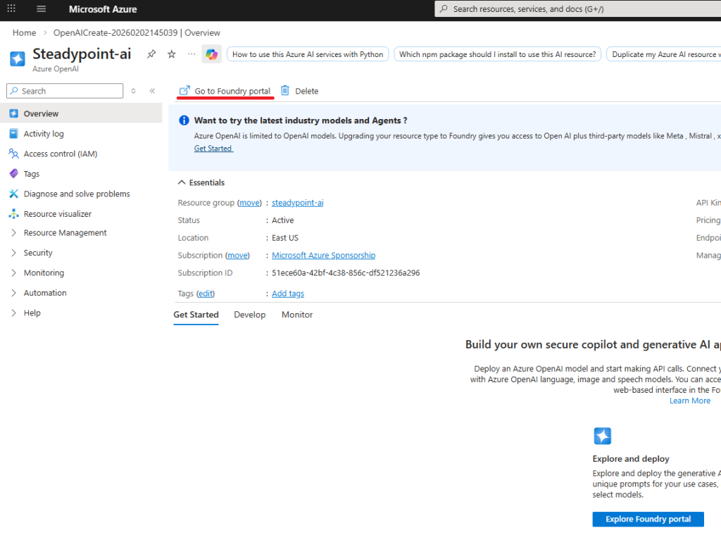 - Click Go to Foundry Portal