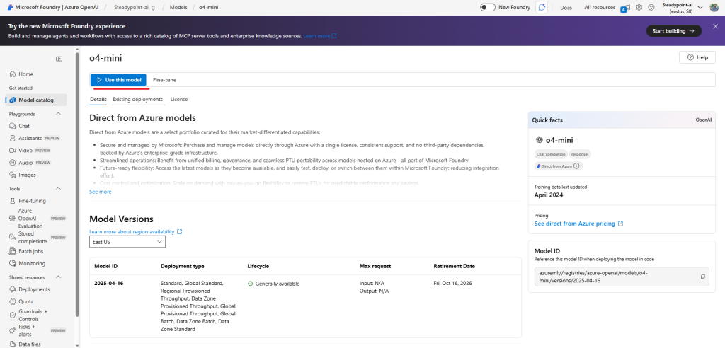 - Click Use this model
